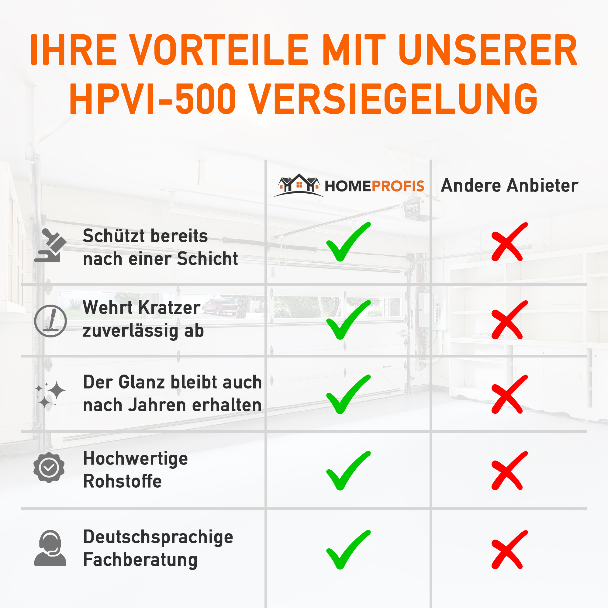 HPVI-500: 2-komponentige, glänzende Epoxidharz-Versiegelung für Innenräume. Glatt, schützend und kratzerschutz. Ideal für Garage, Keller, Wohnräume und Pools.