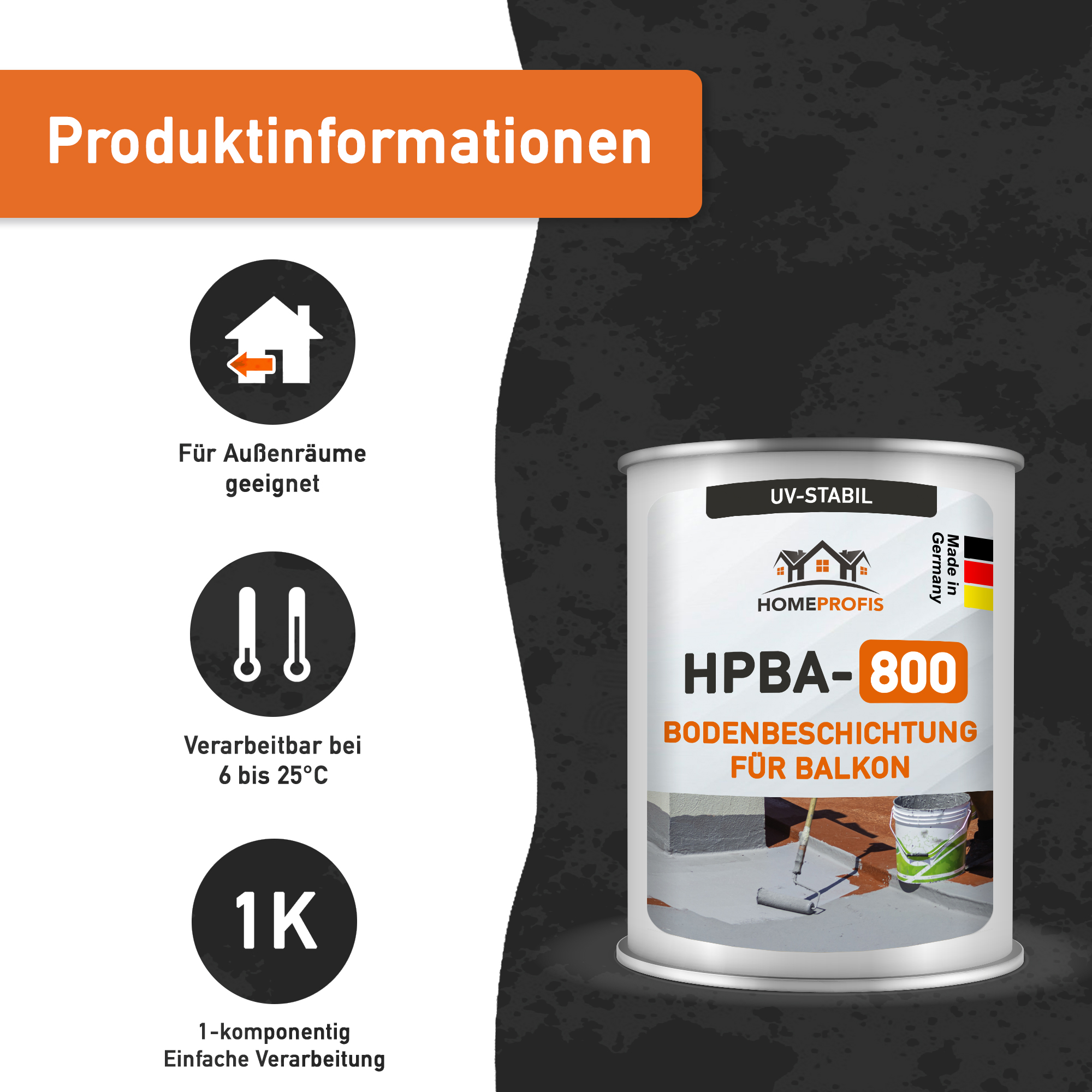 Entwickelt für den Außenbereich, zeichnet sich die HPBA-800 durch ihre Vielseitigkeit und Anpassungsfähigkeit aus. Sie ist nicht nur ideal für Böden, sondern kann auch problemlos auf vertikalen Flächen wie Wänden aufgetragen werden. Dies macht sie zu einer bevorzugten Wahl für Projekte, die sowohl horizontale als auch vertikale Beschichtungsanforderungen haben. Egal ob es sich um Gehwege, Terrassen, Außenwände oder andere äußere Strukturen handelt, diese Bodenbeschichtung bietet sowohl Schutz als auch ein ansprechendes Finish.