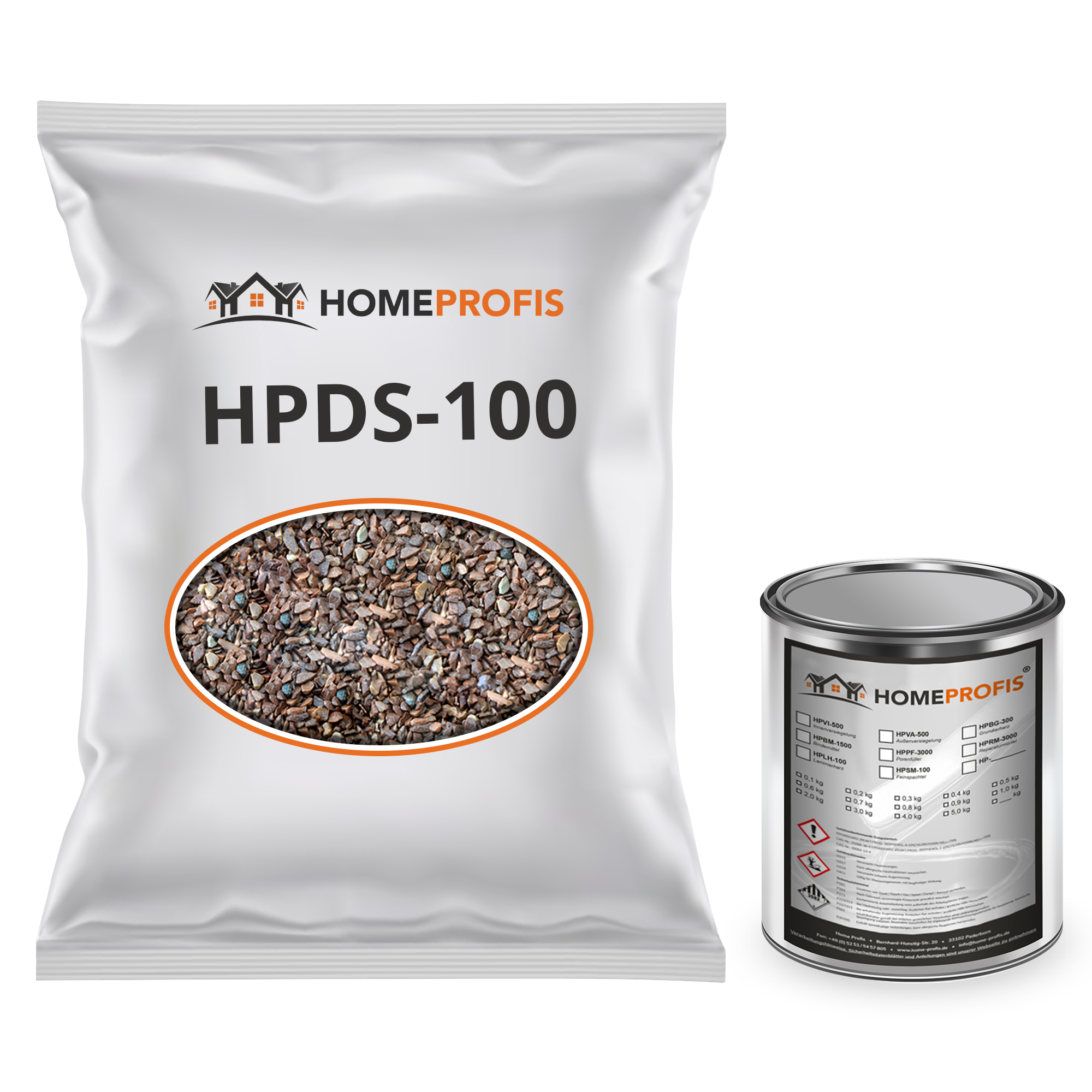 Das Home Profis HPST-5000 ist ein Steinteppich-Set für horizontale Außenräume, welches in verschiedensten Steinsorten und Gebindegrößen erhältlich ist. Der Marmorkies wird mit der entsprechenden Menge an 1-komponentigem HPPU-1500 Bindemittel (Polyurethanharz) vermischt, sodass das Bindemittel jeden Kiesel umhüllt und ihn, während des Trocknungsvorgangs, zu einem Ganzen zusammenklebt.