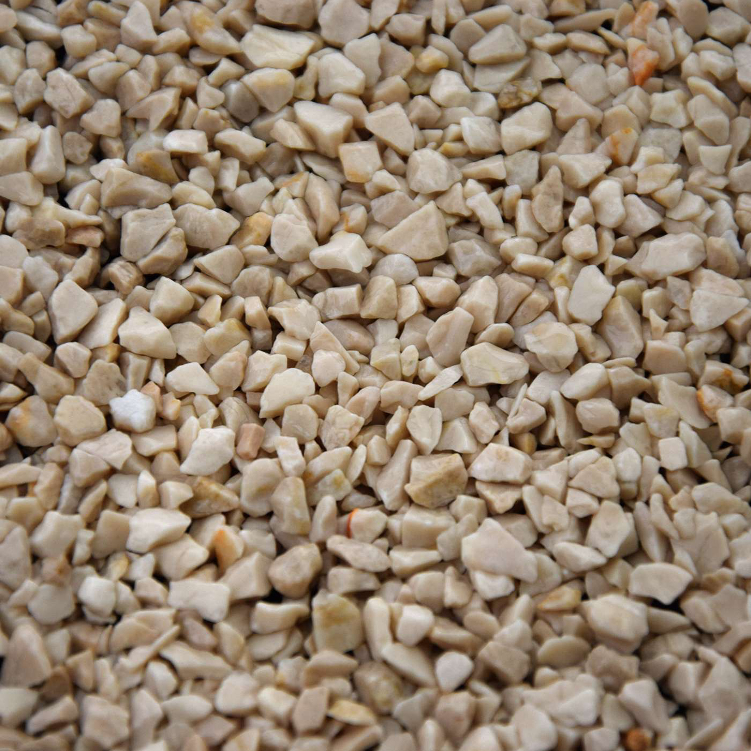 Die Körnung der einzelnen Kiesel kann zwischen 1 mm und 5 mm liegen. Einige Steinsorten sind fein gekörnt, andere grob. Um sicherzugehen, welche Körnung die gewünschte Sorte hat, nehmen Sie bitte vor dem Kauf Kontakt zu uns auf. Die Kiesel sind nicht abgerundet, jedoch schnittsicher
