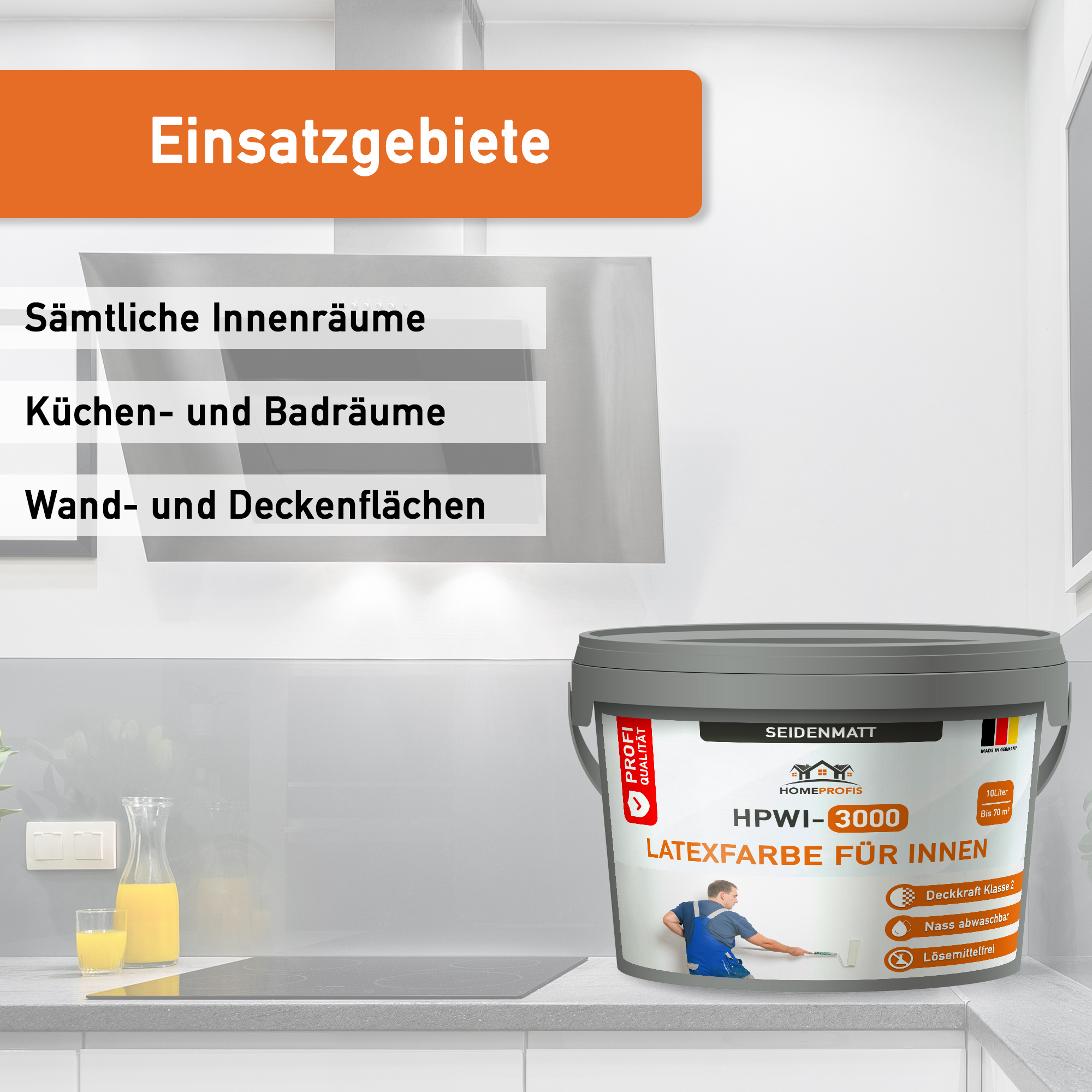 Die HPWI-3000 Wand- und Deckenfarbe auf Latex-Basis ist die ideale Lösung für Streicharbeiten in fleckenanfälligen Innenräumen. Mit ihrer leicht abwaschbaren Oberfläche, hervorragenden Deckkraft, einfacher Anwendung und schneller Trocknungszeit ist sie optimal für Heimwerker und Profis geeignet. Die geruchsarme Formulierung ermöglicht eine schnelle und hochwertige Raumgestaltung, auch in wenig durchlüfteten Innenräumen.