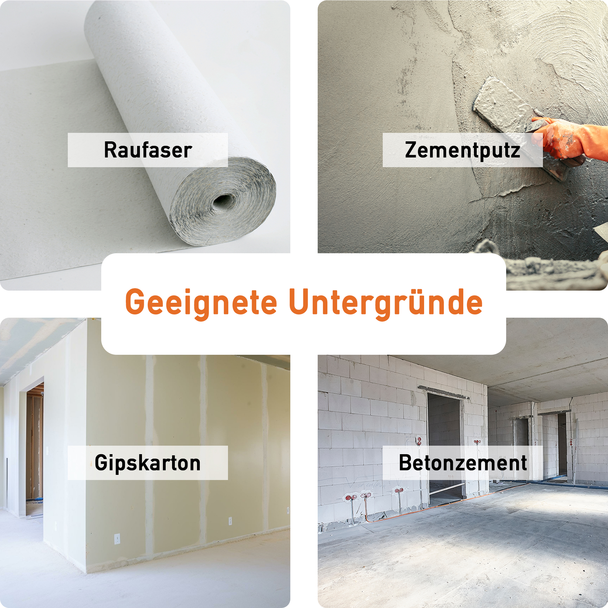 - Der Untergrund, auf den das Produkt aufgetragen wird, sollte tragfähig, sauber, trocken sowie frei von Öl und Fett sein.